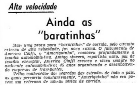 Américo Cioffi está entre as personalidades do automobilismo que a cidade de São Paulo homenageou em 1968 batizando uma rua perto do circuito de Interlagos com seu nome.