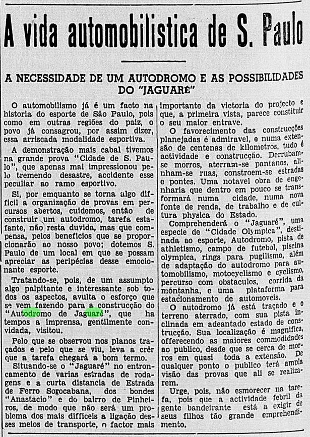 Paulo teve o primeiro autódromo do Brasil e da América do Sul: