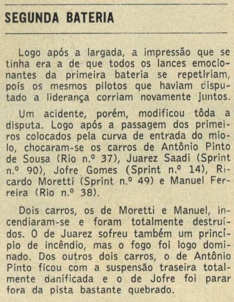 acidente, pilotados por Juarez Saadi, Jofre Gomes e Manuel Ferreira.