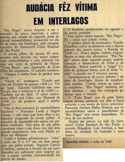 resumo da Revista 4 Rodas sobre a corrida de "Rio Negro"  |