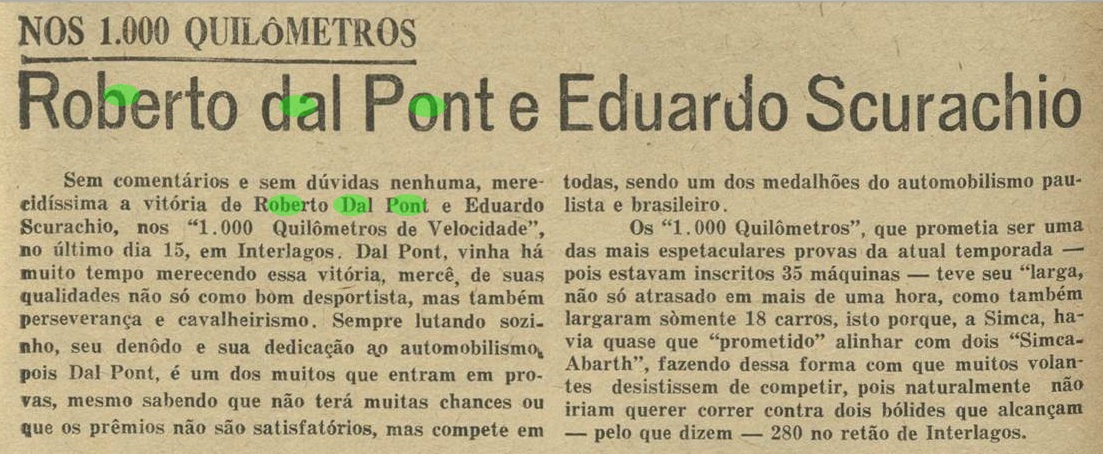 24 Horas de Interlagos” (1966) tem uma nota no “Jornal do