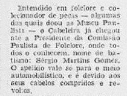 nos meios automobilísticos como Sérgio "Cabeleira", trabalhava na