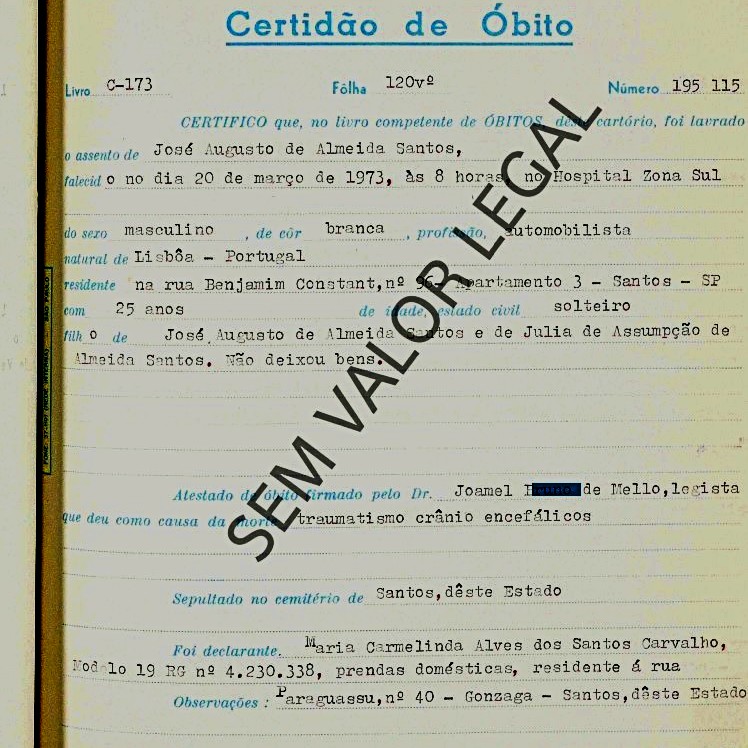 grande prejuízo. José, o filho, na época tinha 21 anos de idade