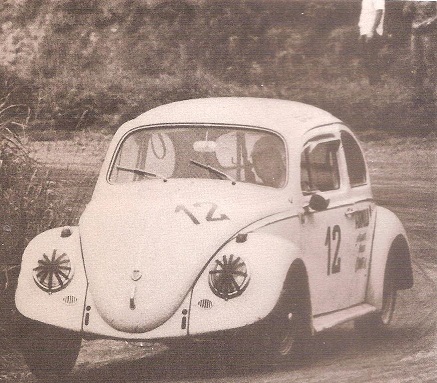 corrida em quarto lugar com seu VW Sedã nº 12.
