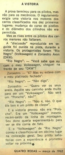 resumo da Revista 4 Rodas sobre a corrida de "Rio Negro" |